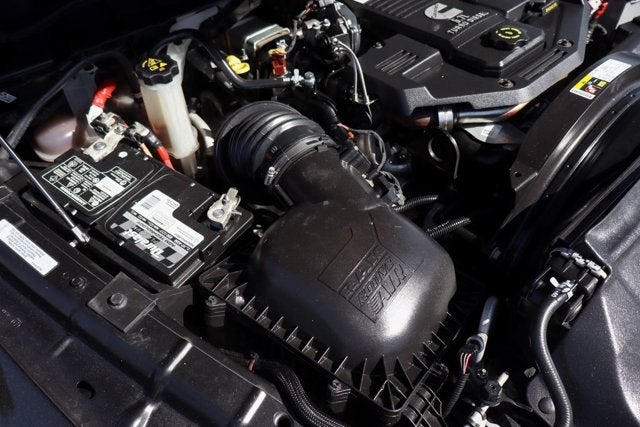 The impressive Cummins engine, paired with a 6-speed automatic transmission and 4-wheel drive, provides unparalleled capability and control, whether you're hauling heavy loads or navigating rough terrain. The Laramie trim level elevates the experience with premium features like leather-trimmed sport bucket seats, a heated steering wheel, and a state-of-the-art Uconnect 4C navigation system with an 8.4-inch touchscreen display.