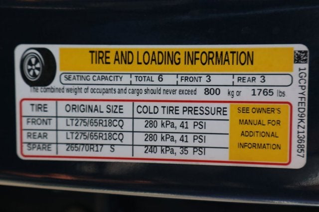 - Front Tire Size: LT275/65R18C