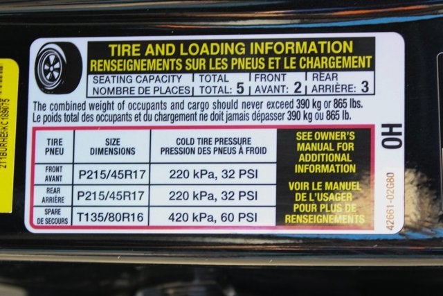 - Tires: P215/45R17 All-Season