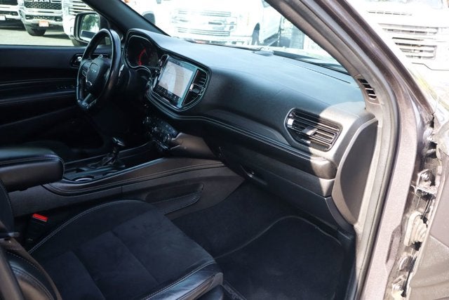 The interior of this Durango SRT Hellcat is equally impressive, with premium leather-trimmed bucket seats, a heated steering wheel, and a state-of-the-art Uconnect 5 infotainment system with a 10.1-inch touchscreen display. The 19-speaker Harman Kardon audio system and SiriusXM satellite radio ensure an immersive listening experience, while features like blind spot monitoring and rear cross-traffic alert provide added peace of mind on the road.