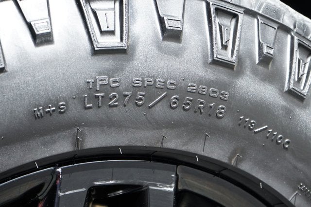 - Tires, LT275/65R18C MT blackwall Goodyear Wrangler DuraTrac