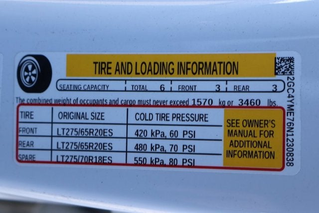 - Tires, LT275/65R20 all-terrain, blackwall