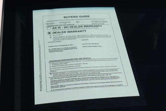 Don't miss out on the opportunity to own this exceptional 2022 Mercedes-Benz Sprinter 2500 Cargo 144 WB. Visit us at Pacific Auto Center today and experience the power, versatility, and uncompromising quality that this Sprinter has to offer.