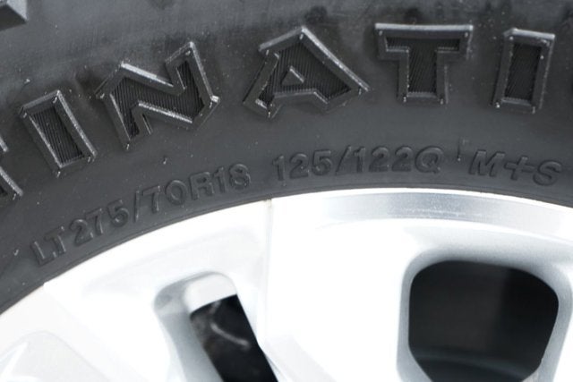 - Tire, spare LT275/70R18 all-terrain, blackwall (Included and only available with (QF6) LT275/70R18E all-terrain, blackwall tires, (QG3) LT275/70R18 mud-terrain, blackwall tires or (QF9) LT275/65R20 all-terrain, blackwall tires with (E63) Durabed, pickup bed. Available to order when (ZW9) pickup bed delete and (QF6) LT275/70R18E all-terrain, blackwall tires are ordered.)