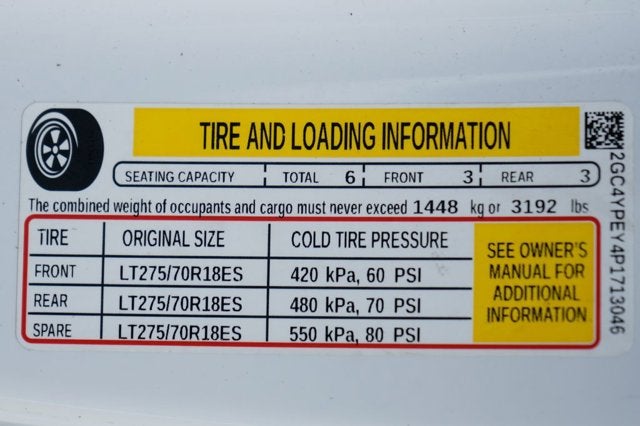 - Tires, LT275/70R18E all-terrain, blackwall