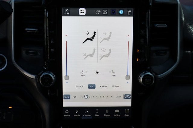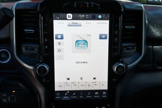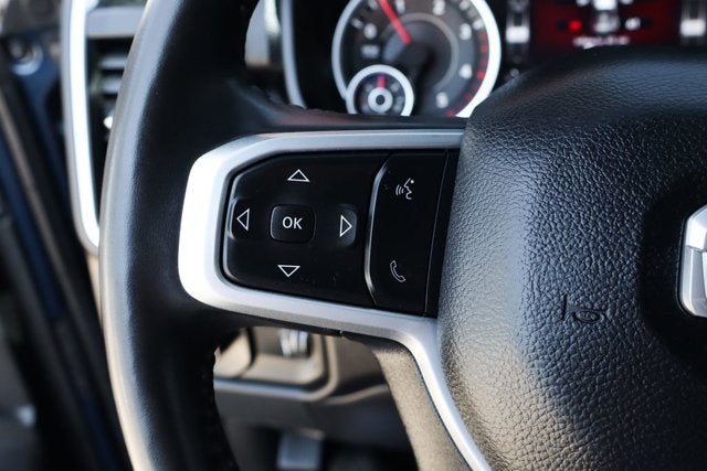 Inside, the spacious crew cab provides ample room for passengers and cargo. Sink into the premium cloth bucket seats with power-adjustable lumbar support for the driver. Stay connected with the Uconnect 5 infotainment system, 9-speaker Alpine audio, and available WiFi hotspot.