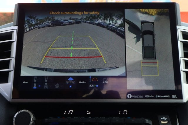 The Nightshade Package adds a touch of sophisticated style with its gloss-black exterior accents, while the Panoramic View Monitor and Power Package enhance the vehicle's utility and convenience. The Qi-compatible wireless smartphone charger and 400W/120V AC power supply in the rear seat and bed further demonstrate the Tundra's commitment to modern amenities.