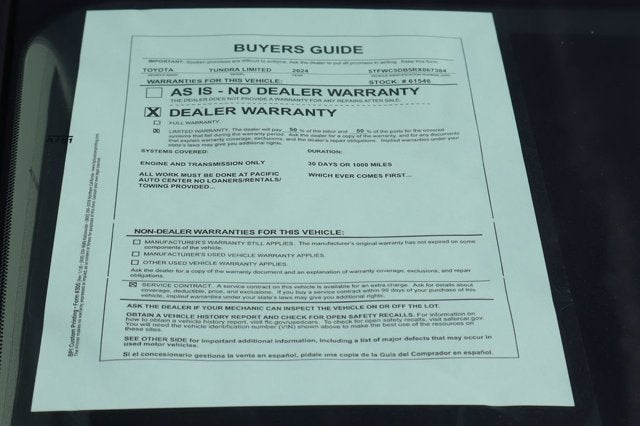 We invite you to visit Pacific Auto Center and take this remarkable truck for a test drive. Our knowledgeable sales team is eager to demonstrate the Tundra's capabilities and help you discover how it can elevate your driving experience.